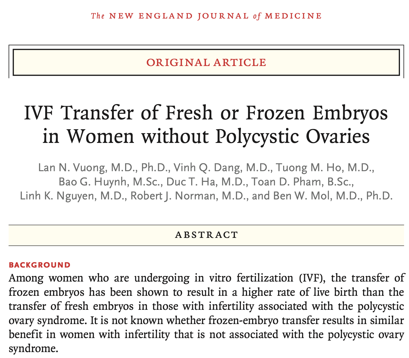 Transfer of Fresh versus Frozen Embryos in Ovulatory Women